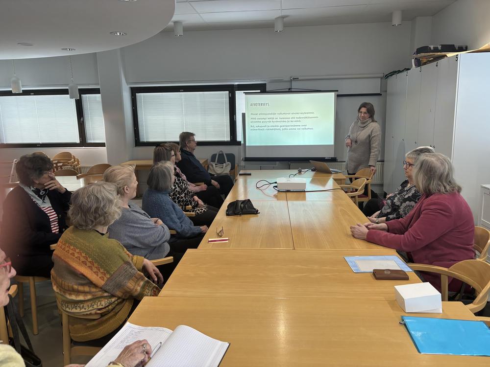 Helmikuun toisessa tapaamisessa saimme kuulla mm. unen vaikutuksesta aivoterveyteen Muistiyhdistyksen Sirkku Rauman kertomana.
