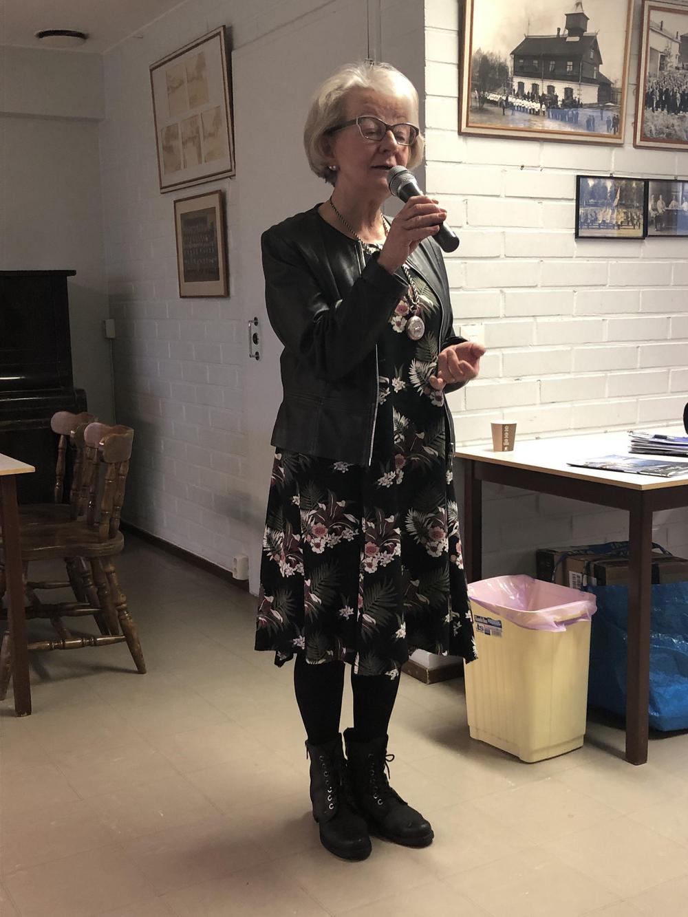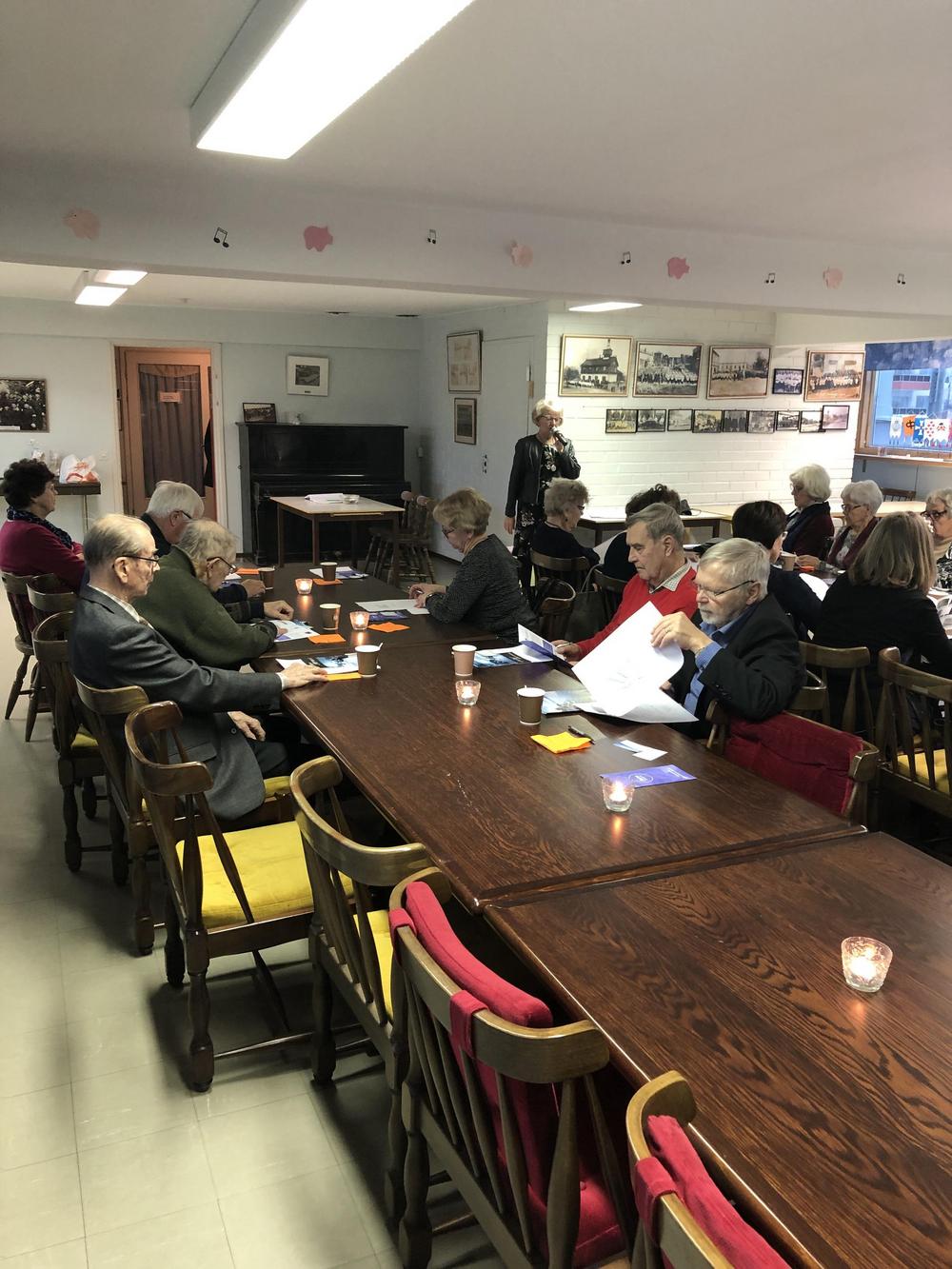 Liisa Nykänen kertoi lapsuusmuistojaan 40-luvun Kemistä. Kuulijoita oli paikalla lähes 40.