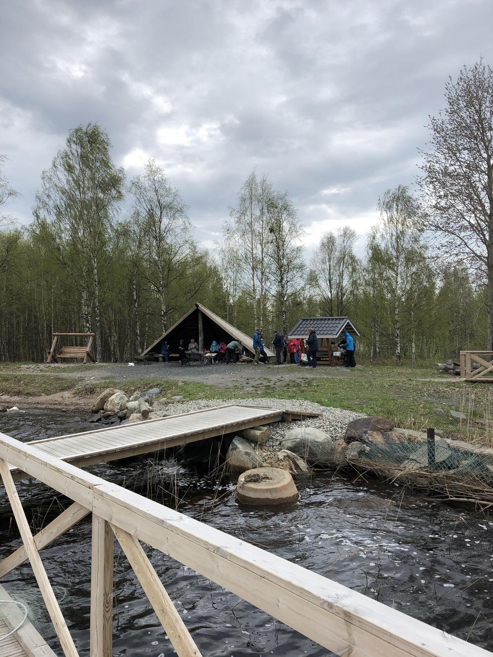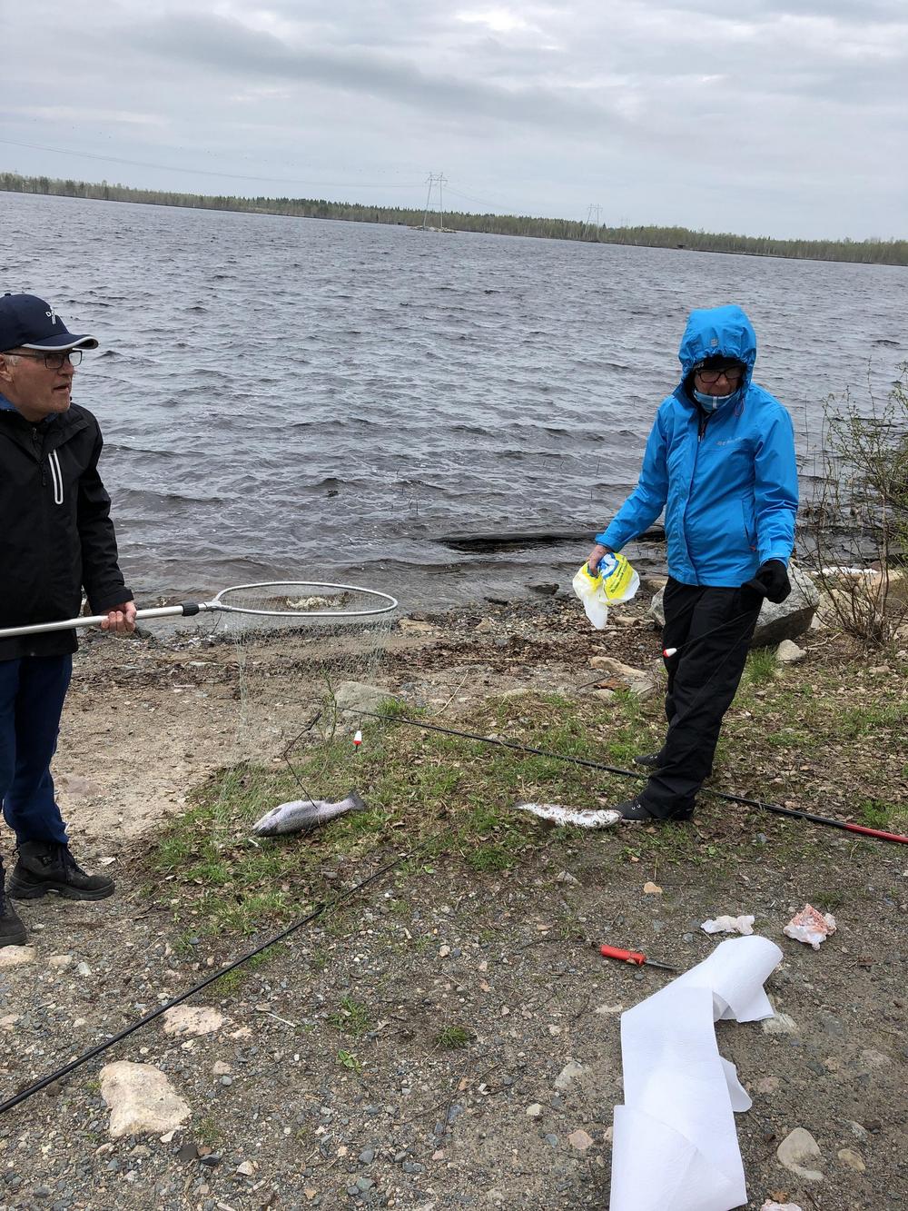 Veitsiluodon kalapaikalla nautittiin Taposen Maijan ja Sepon laittamat mahtavat tarjoilut ja kalasteltiin. Kirjolohia nousi mato-ongella mukavasti.