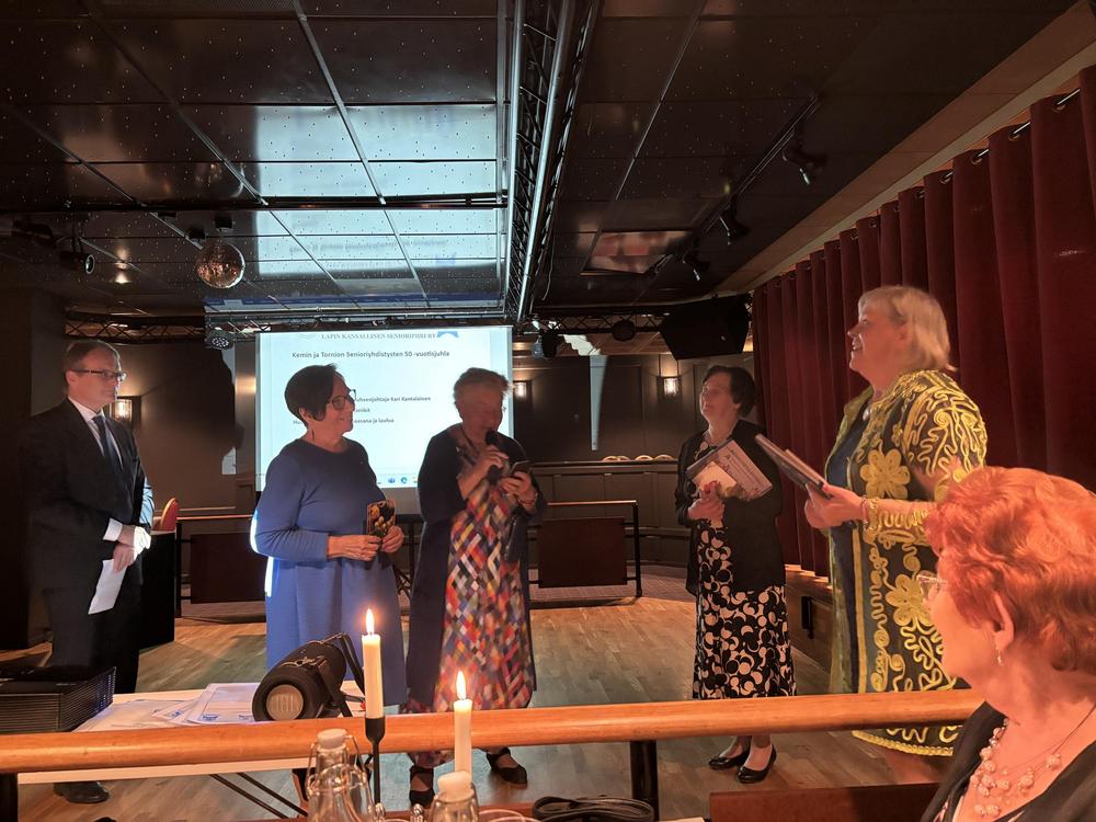 Haaparannan kaupunginhotellissa pidetyssä juhlatilaisuudessa 2.10.2024 luovutettiin Senioriliiton kultainen ansiomerkki Kemin senioreista Seppo Taposelle, Rovaniemen senioreista Hannele Simoselle ja Annneli Sundströmille. Hopeisen ansiomerkin saivat Kemin senioreista Maija Honkavaara, Irma Tyynelä sekä Pirkko Heinonen.