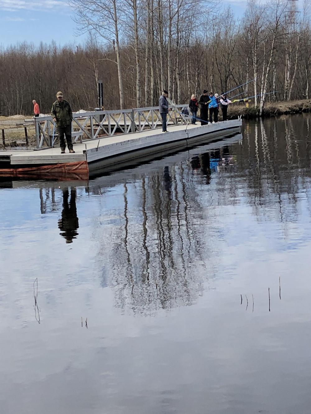 Kevätkauden päätöstapahtumaa vietettiin Veitsiluodon kalapaikan laavulla. Maija ja Seppo olivat taas savustaneet ja suolannet meille lohta ja valmistaneet niiden lisäksi maittavat salaatit.