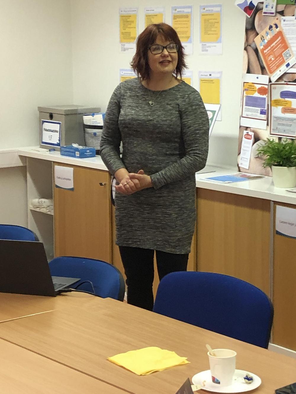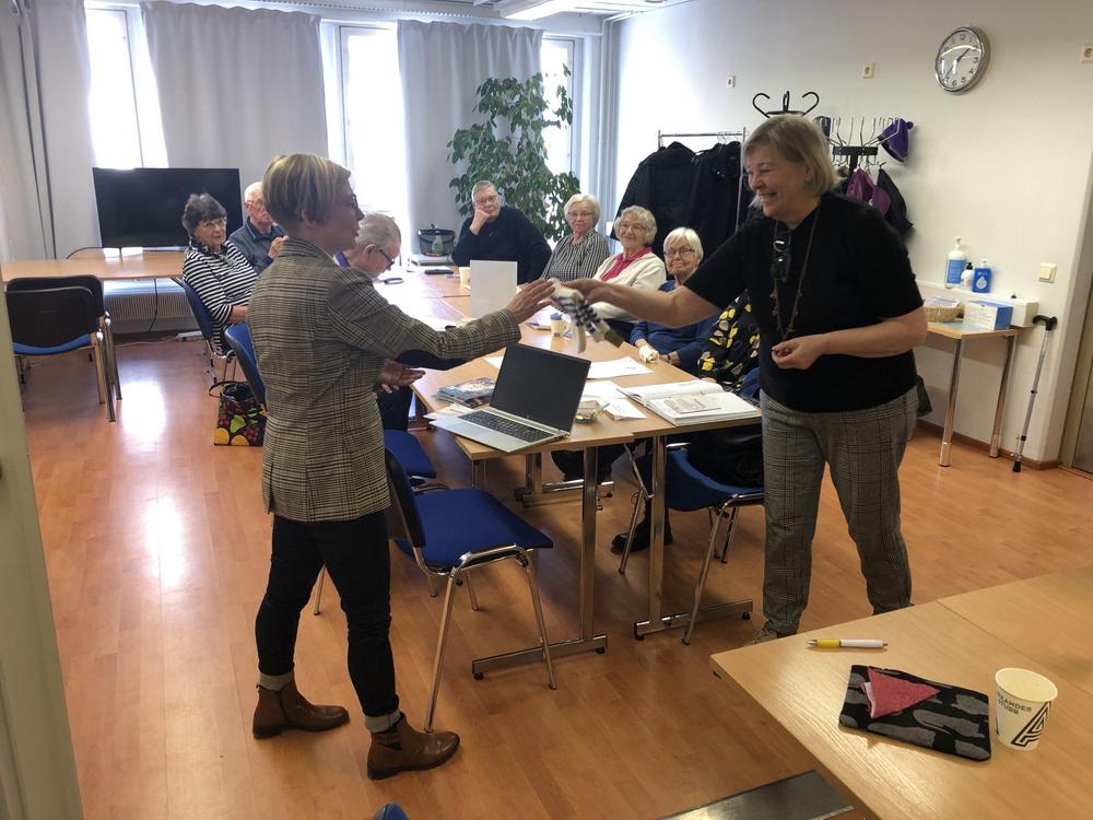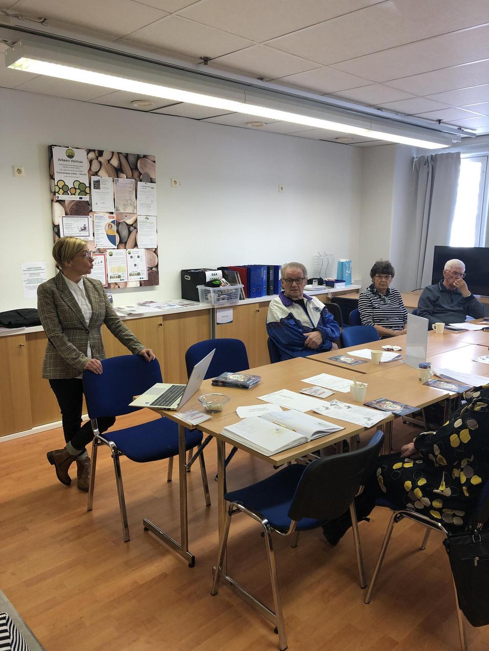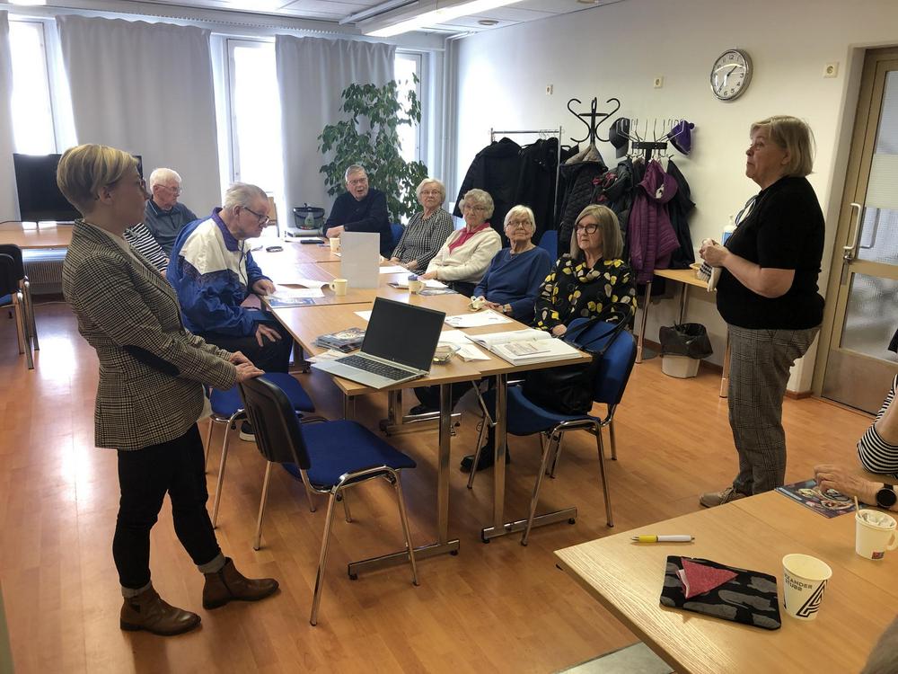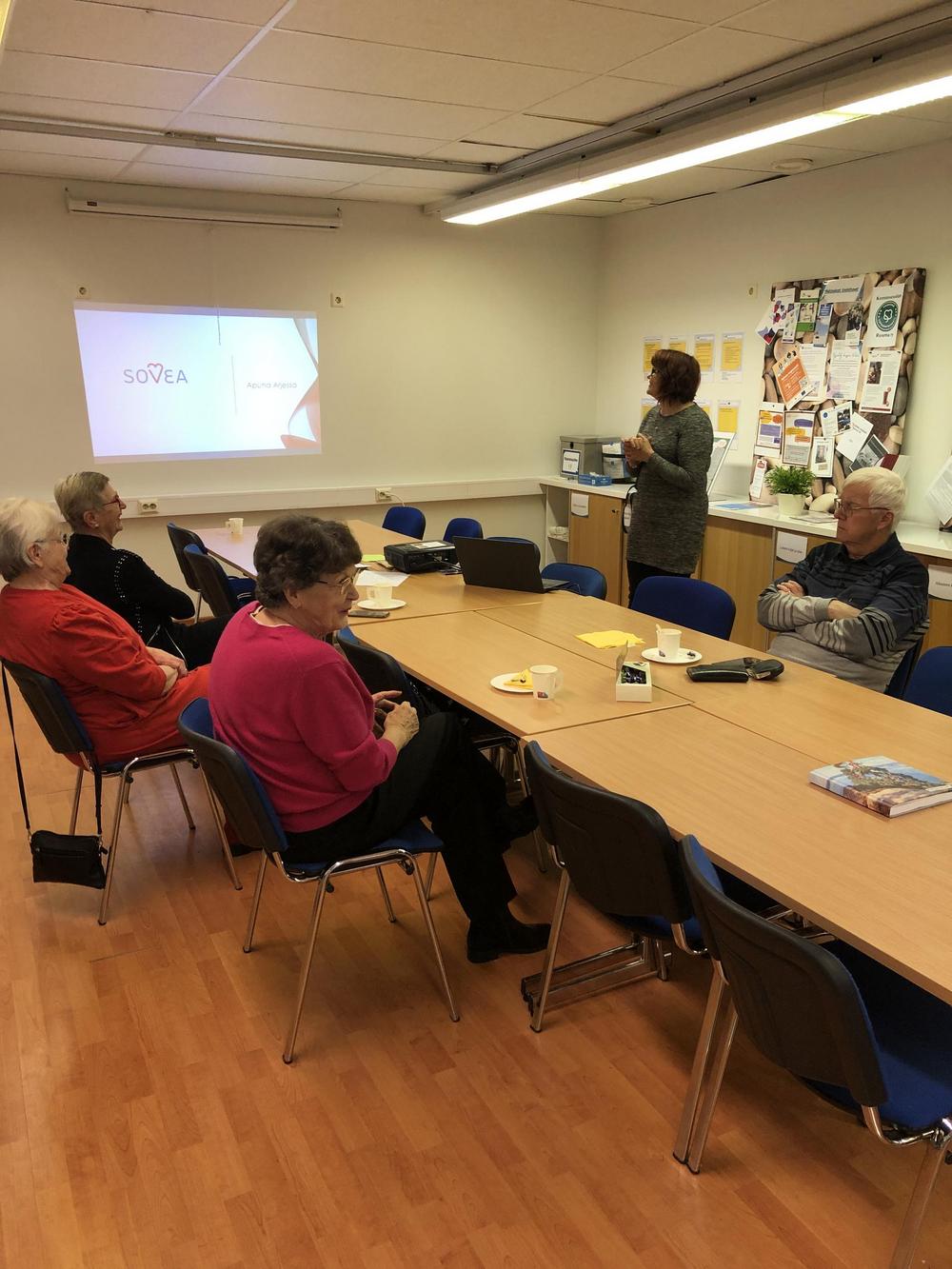 Tammikuun ensimmäisessä kuukausitapaamisessa Eeva Lohiniva Sovea OY:stä kertoi heidän yrityksensä mahdollisuuksista tarjota palveluja ja auttaa senioreita selvitymään kotona arkipäivän mukanaan tuomista haasteista.