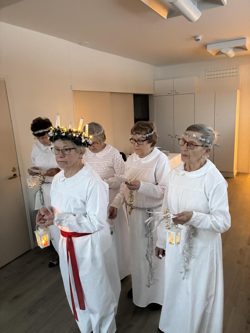 Kulunut vuosi päätettiin perinteisesti laulamalla joululauluja Kemin seurakuntakeskuksen alasalissa. Tilaisuus alkoi Lucia-kulkueen saapuessa. Kanttori AKi Tyni oli seurakunnan puolesta säestämässä laulujamme.
