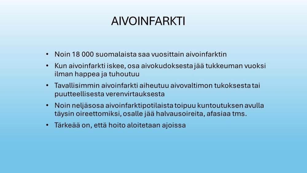 Mäkitalon Eija jakoi meille tietoa sydänifarktista ja aivoinfarktista huhtikuun kuukausitapaamisessa.