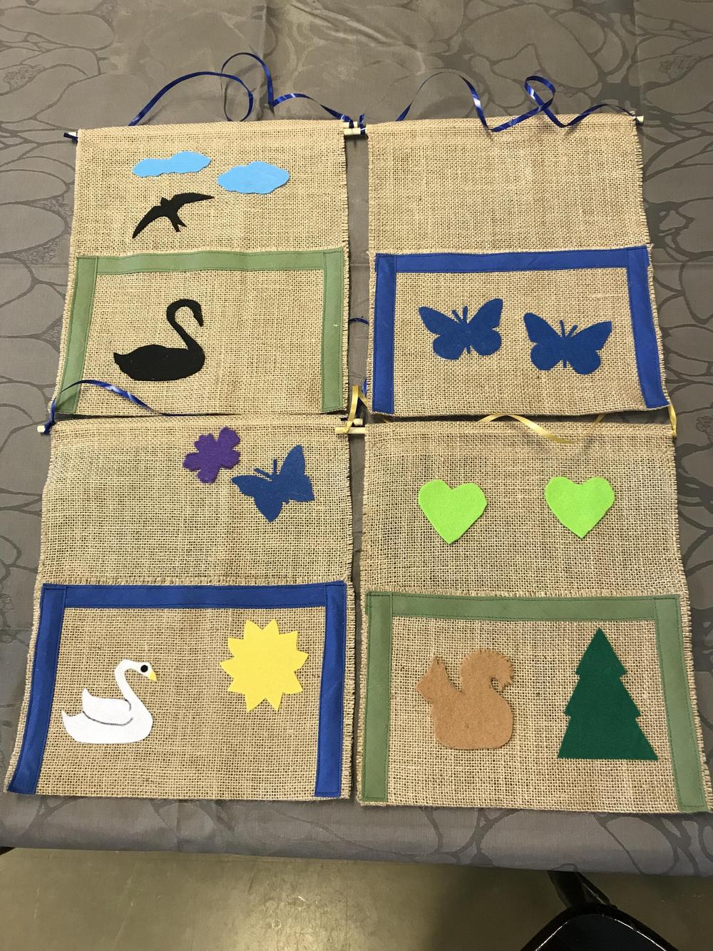 Askarteluhuovasta syntyy joulukorttien / laskujen säilytyspusseja